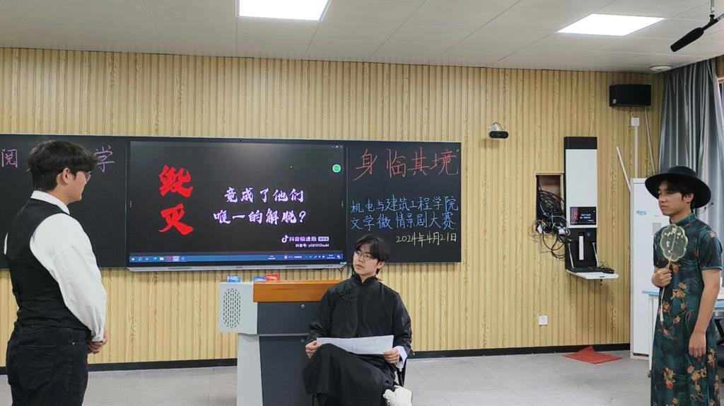 为迎接第30个“世界读书日”,深化书香校园建设,机电与建筑工程学院于2025年4月21日在一教211教室成功举办“阅见美学,身临其境”文学微情景剧大赛。本次活动创新性地将“微情景剧”与“经典阅读”相结合,旨在通过沉浸式艺术体验提升学生的文学素养和审美能力。活动由学院党总支书记助理邓金鑫、团总支书记张亚飞及辅导员们担任评委。