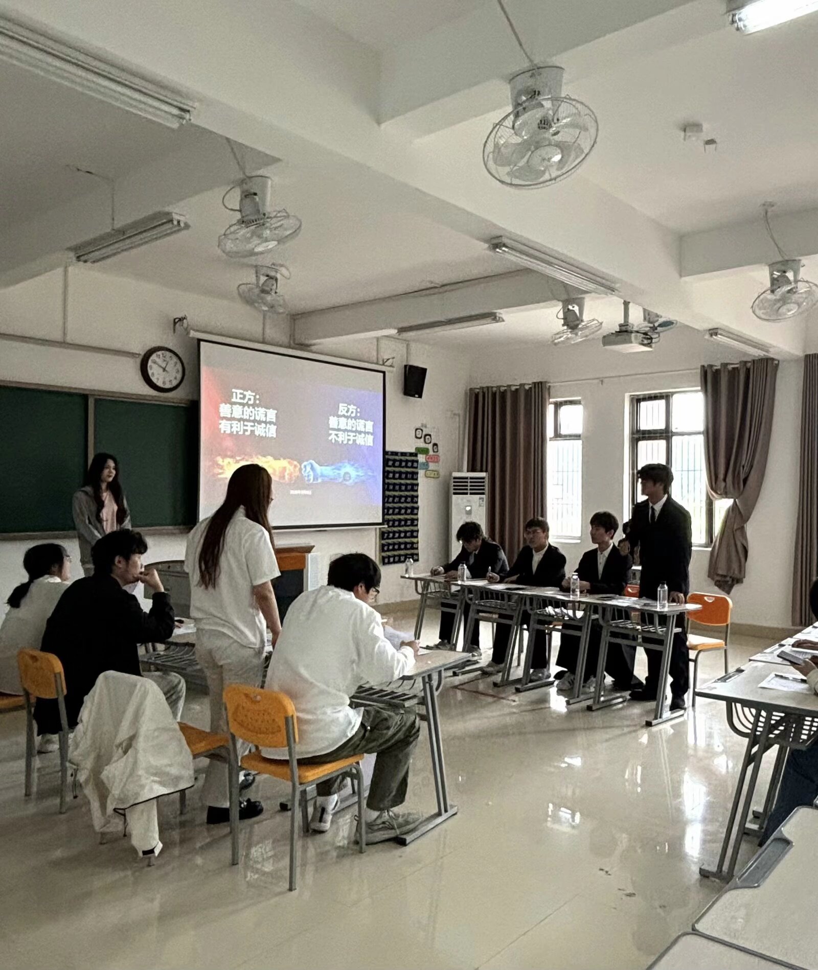 比赛伊始,正方一辩率先亮剑,以“善意谎言是困境中的温暖慰藉”为论点,通过讲述医生对绝症患者隐瞒病情、家人对远行者报喜不报忧等生动案例,阐述善意谎言在特殊情境下缓解他人焦虑、给予心灵安抚的积极作用,强调其是维系情感、守护诚信的柔性方式。反方一辩也毫不示弱,从“诚信即真实无欺”的核心出发,指出善意谎言本质上仍是欺骗,虽能解一时之困,却会埋下信任隐患,长远来看将侵蚀诚信根基。