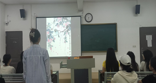 活动以“PPT+教学案例”的创新分享拉开序幕。班级学生结合《3-6岁儿童学习与发展指南》,用生动课件展示“如何用古诗词启蒙幼儿语言”、“传统节日游戏设计”等教学方案。黄心如、杨欣睿、张慧、王敏、高梦同学现场演示教学片段,将《悯农》、《春晓》改编成手指谣,让幼儿在韵律中感知诗词之美,赢得阵阵掌声。辅导员曹老师点评道:“青年幼师要当好文化‘翻译官’,让千年文脉在孩子心中生根发芽。”