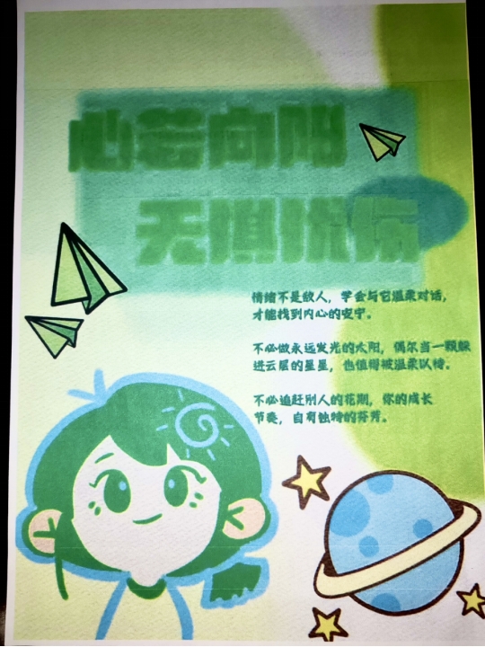 为切实加强学生心理健康教育,丰富校园精神文化生活,引导学生树立积极健康的心理观念,教育学院于5月6至16日成功举办心理健康海报设计大赛。本次大赛吸引了同学们的广泛关注,共收到海报作品33幅,评选出一等奖2幅、二等奖3幅、三等奖 5幅。
