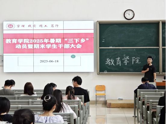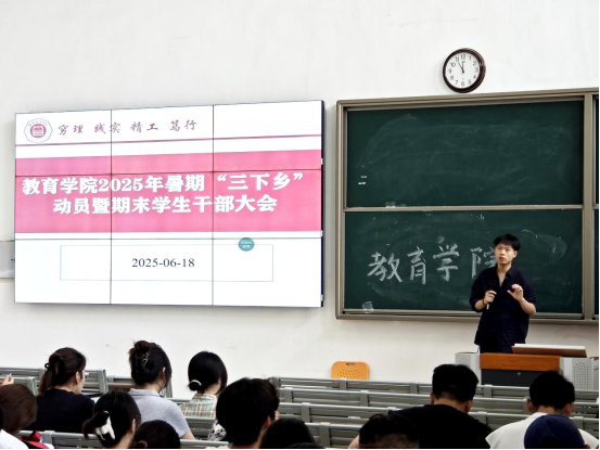 本次学生干部大会的召开,为教育学院2025年暑期“三下乡”社会实践活动的顺利开展和期末学生工作的有序进行奠定了坚实基础。后续,教育学院将持续跟进“三下乡”社会实践工作进展,为培养五育并举、全面发展的挺膺担当人才贡献力量。