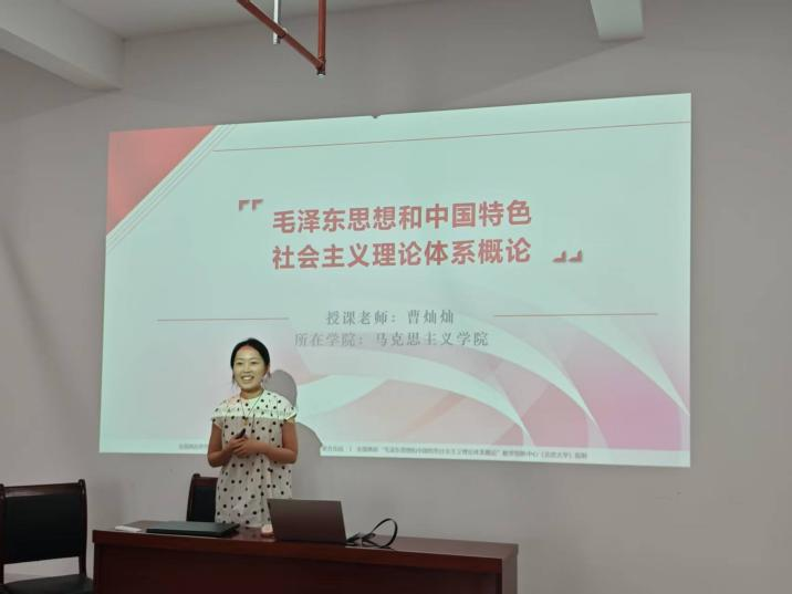 会上,曹灿灿、周铜铜分别作《毛泽东思想和中国特色社会主义理论体系概论》和《思想道德与法治》课程教学示范,围绕教学设计、学情把握、课堂互动等核心环节分享教学经验。
