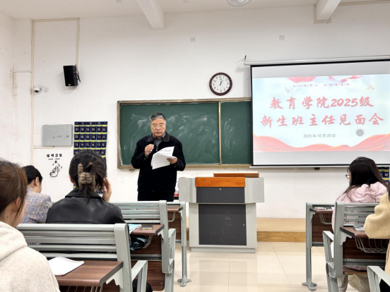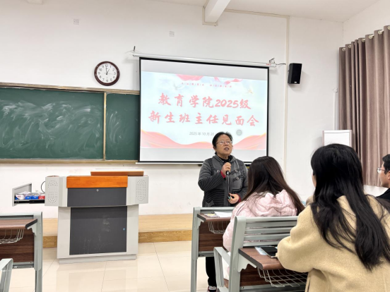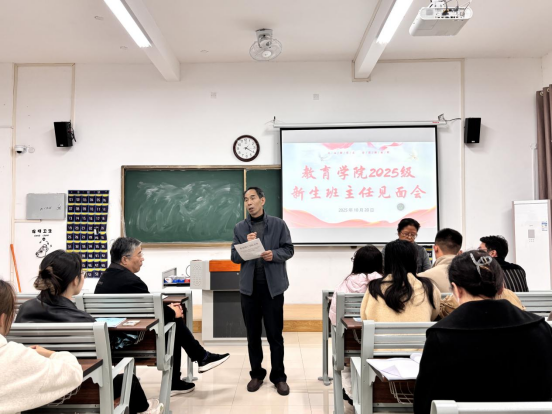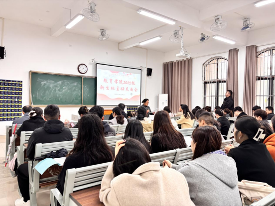 此次见面会不仅明确了学院对2025级新生的育人方向与工作部署,更凝聚了班主任、辅导员与学生干部的育人合力,为新生顺利开启大学生活奠定了坚实基础。今后,教育学院将持续秉持“育人为本”的理念,为新生成长提供全方位支持,助力其成长为高素质的教育人才!