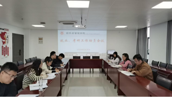 2025年10月28日上午,经济与管理学院在行政楼725会议室召开就业、考研专题会议,由院长吴玲主持,书记助理员禹辛、团总支书记王绎程及全体辅导员参会,部署毕业班就业推进、考研帮扶及离校准备工作。
