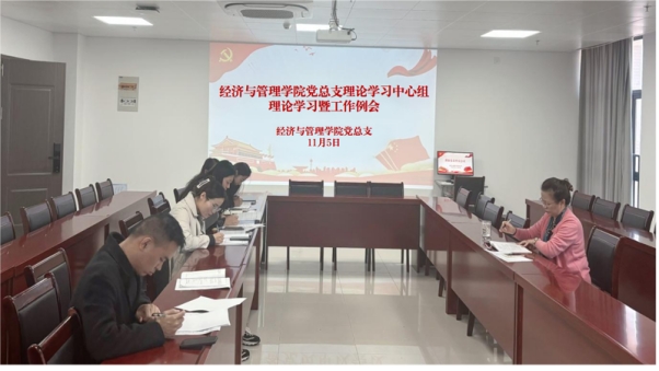 2025年11月5日,经济与管理学院党总支在学院党员活动室725召开党总支理论学习暨工作例会。本次会议由学院党总支书记吴玲主持,全体党总支委员参会。