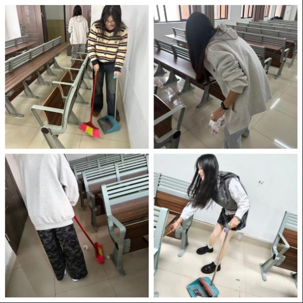 为弘扬劳动精神,凝聚校园文明力量,落实立德树人根本任务,将劳动教育融入人才培养全过程,经济与管理学院于2025年10月22日至11月12日期间,每周三下午组织开展“致敬劳动者,共建美丽校园”劳育系列活动。本次活动面向经管学院全体在校学生,紧扣“致敬劳动者,共建美丽校园”主题,来自27个班级的两百多名同学分批有序参与,对1号、2号教学楼的固定教室,以及宿舍楼周边的公共区域进行了全面清扫。
