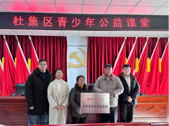 为丰富乡村儿童课余生活,践行青年学子社会责任,2025年12月27日上午教育学院“红淮儿”支教社四名志愿者在指导老师张晓婷带领下走进杜集区刘庄社区开展支教与“大学生社会实践基地”挂牌活动。学院分管副书记孟向红、团总支副书记吴天一参加了活动。