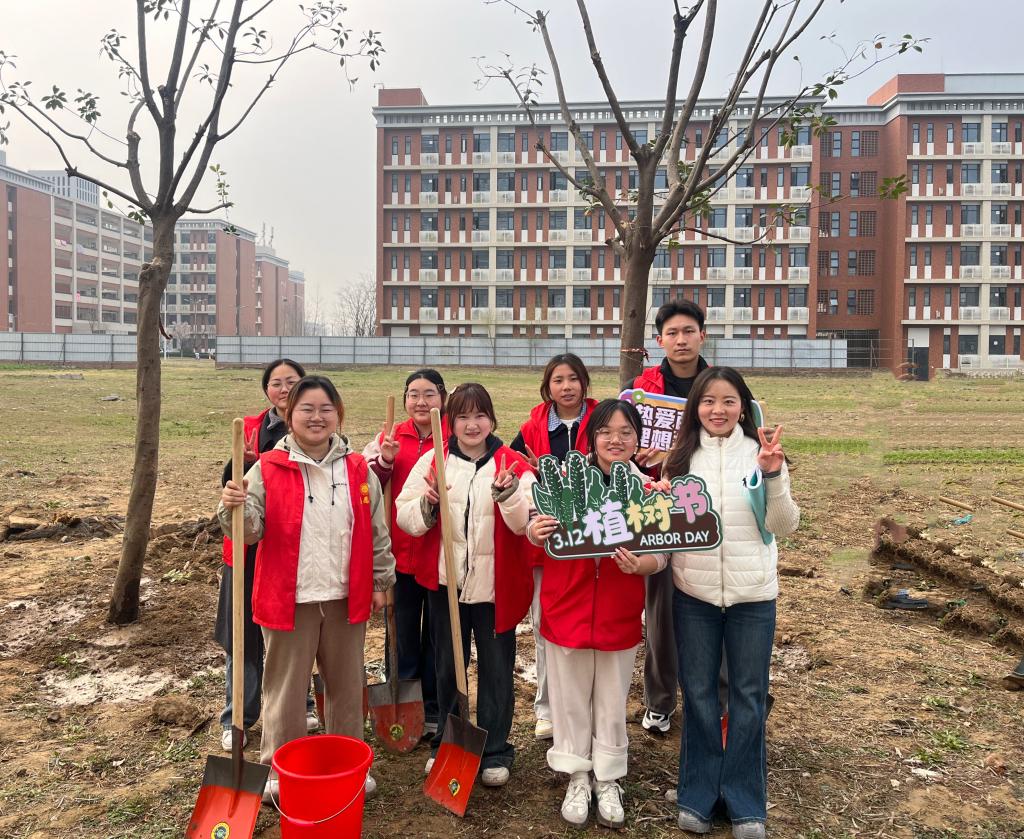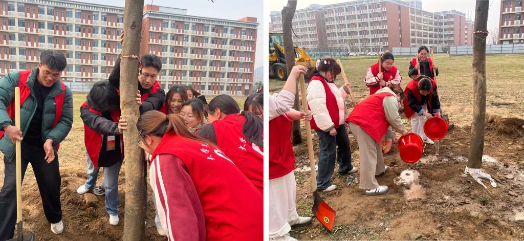 活动现场师生们分工协作,大家手持工具,相互配合、干劲十足,有的挥锹铲土、夯实根基,有的扶正树苗、调整间距,有的提水浇灌、滋润新苗,欢声笑语间,一排排新栽的树苗迎风挺立,为春日校园增添了一抹鲜活的绿意。参与活动的同学表示,通过亲手植树,不仅体验到了劳动的快乐,也深刻感受到了绿色发展的重要性,未来将以实际行动守护校园绿色,传递生态文明理念。