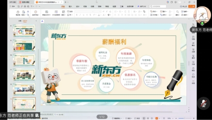 宣讲会上,新东方合肥学校人力资源部负责人范立渊围绕企业背景、招聘岗位、职业发展及薪资福利等内容展开详细介绍。新东方通过基础教育、素质教育、国际教育、成人教育、智慧教育、图书文创、直播电商、文旅业务、教育科技与投资这9大业务板块构建了覆盖全年龄段、全场景的教育生态体系,形成“教育+科技+文化”的生态闭环。始终坚守“终身学习、全球视野、独立人格、社会责任”的育人理念,重视教育人才的培养与储备,本次招聘涵盖网课班主任、课程咨询顾问、教研专员等多个岗位,为教育学子提供了多元化职业选择。此外,负责人还特别介绍了福利待遇与发展空间,如综合薪资、住宿机制、午餐补贴、年度调薪、晋升空间、培训机制、定期体检、年终奖金、团建活动以及节日福利等。这些福利措施旨在吸引和留住优秀人才,为员工的职业发展提供有力保障。