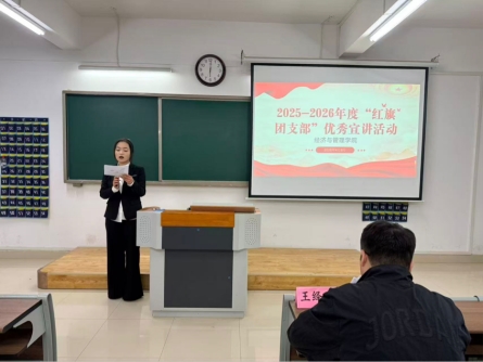 为进一步深化基层团支部建设,选树先进典型,充分发挥优秀团支部的示范引领作用,营造比学赶超、争先创优的良好氛围,4月9日下午6时,经济与管理学院于二教323教室顺利举办2025—2026年度“红旗团支部”优秀宣讲活动。学院团总支书记王绎程、辅导员代表及各团支部支委参加活动。
