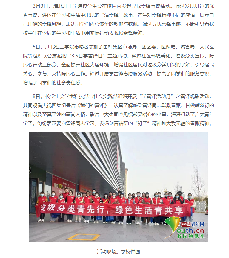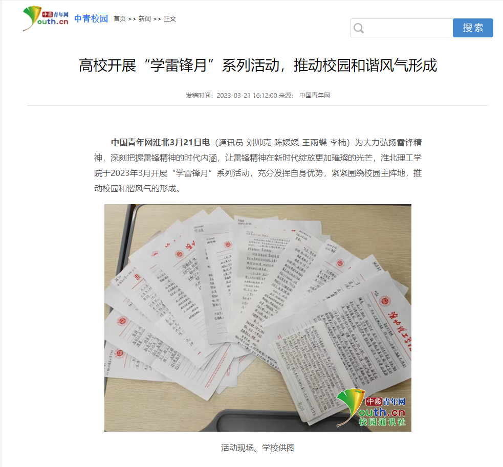 为大力弘扬雷锋精神,深刻把握雷锋精神的时代内涵,让雷锋精神在新时代绽放更加璀璨的光芒,Beat365唯一官方网站于2023年3月开展“学雷锋月”系列活动,中国青年网对此进行了报道。