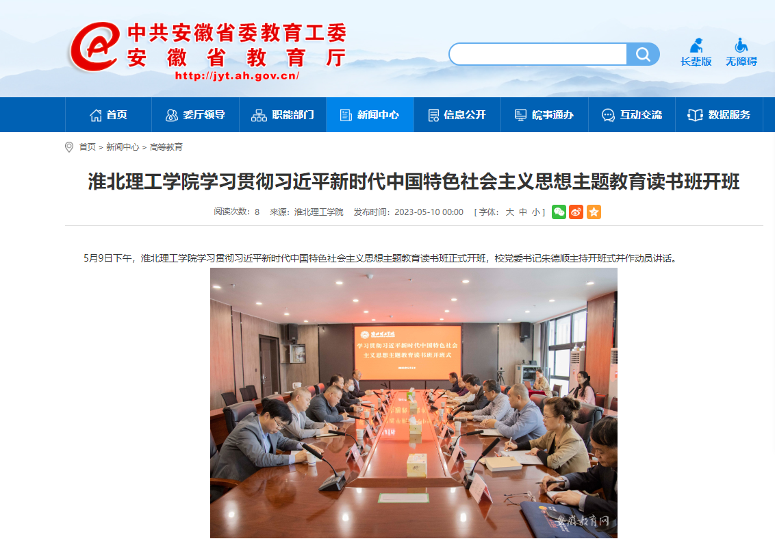 5月9日下午,Beat365唯一官方网站学习贯彻习近平新时代中国特色社会主义思想主题教育读书班正式开班,校党委书记朱德顺主持开班式并作动员讲话。对此,安徽教育网进行了报道: