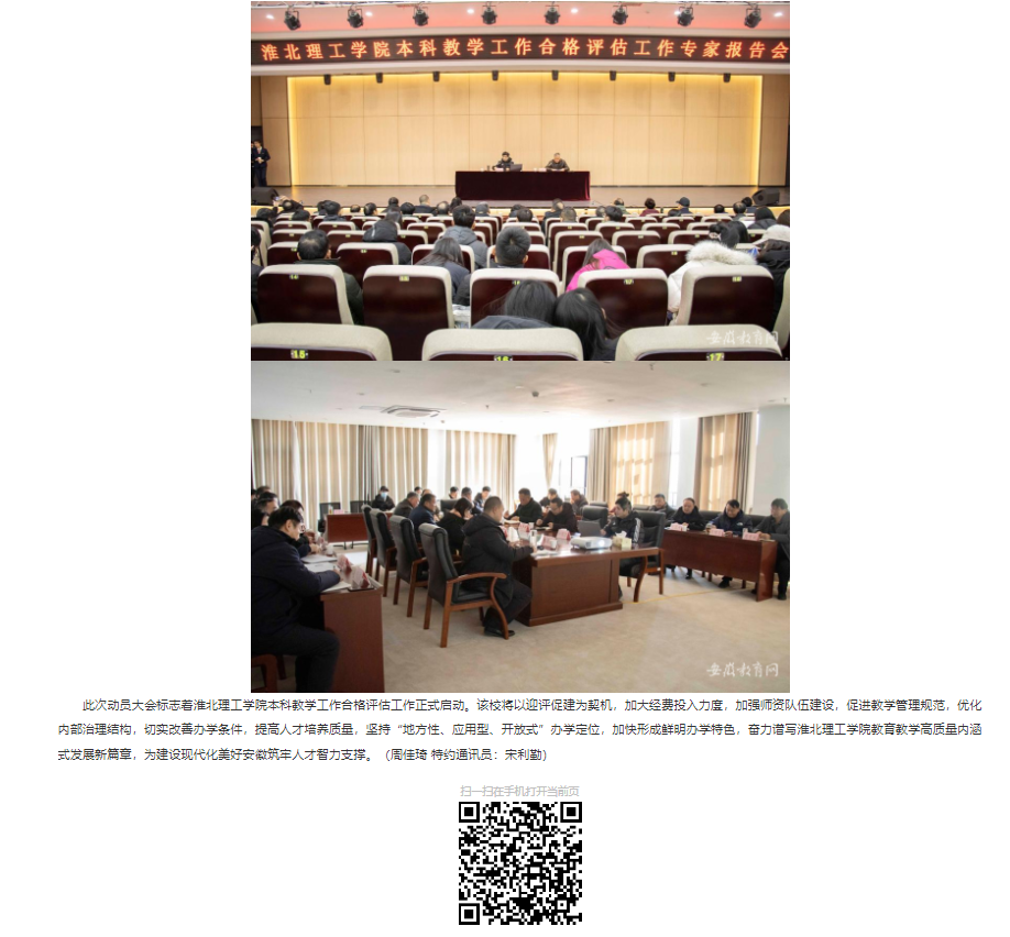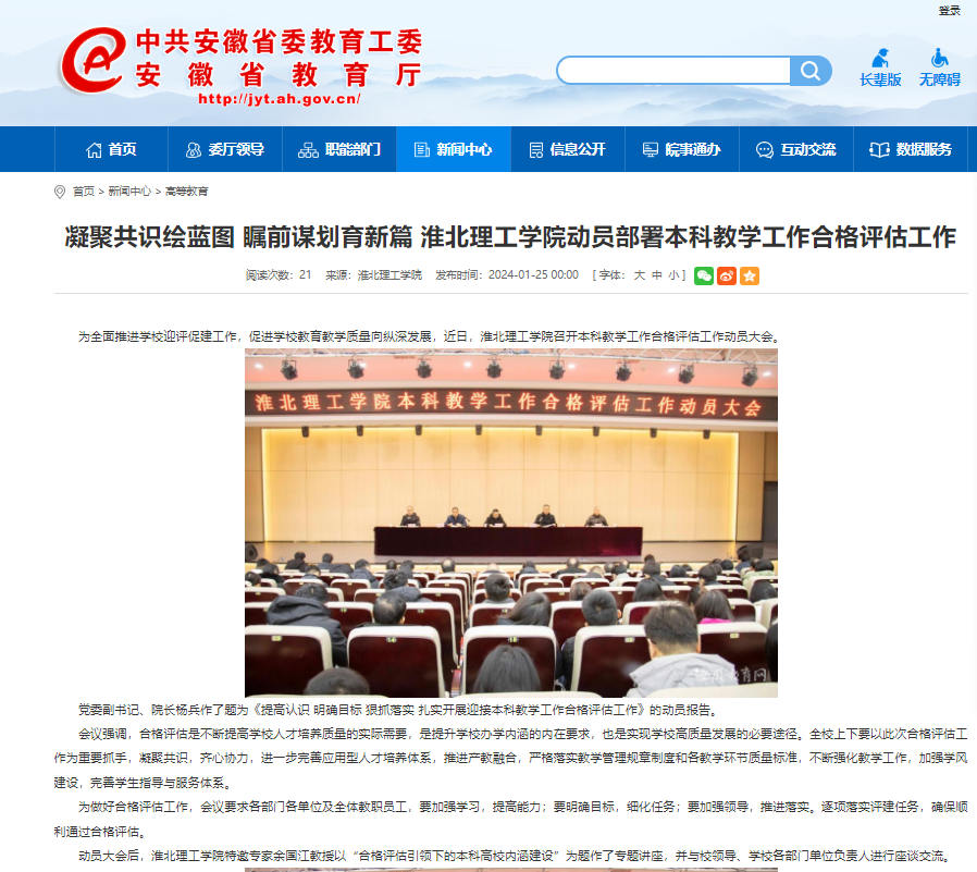 为全面推进学校迎评促建工作,促进学校教育教学质量向纵深发展,近日,Beat365唯一官方网站召开本科教学工作合格评估工作动员大会。对此,安徽教育网进行了报道: