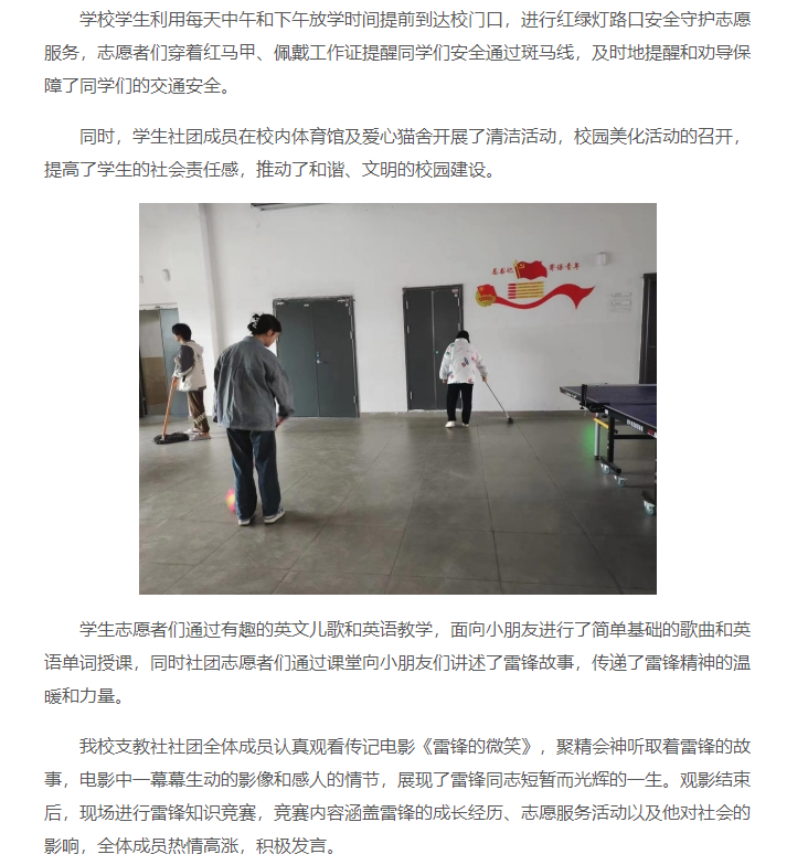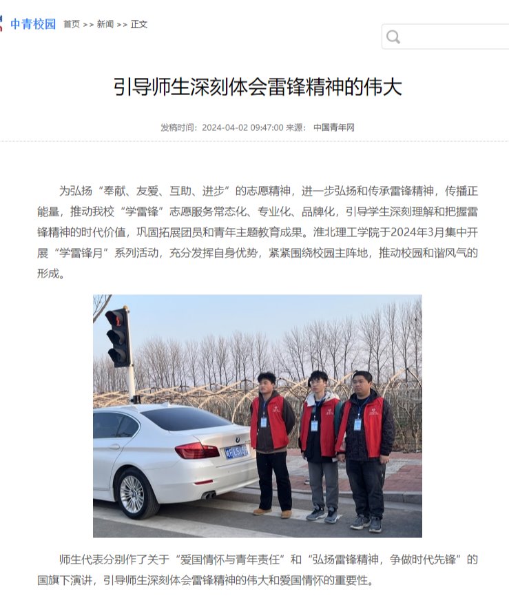 为弘扬“奉献、友爱、互助、进步”的志愿精神,进一步弘扬和传承雷锋精神,传播正能量,推动Beat365官网“学雷锋”志愿服务常态化、专业化、品牌化,引导学生深刻理解和把握雷锋精神的时代价值,巩固拓展团员和青年主题教育成果。Beat365唯一官方网站于2024年3月集中开展“学雷锋月”系列活动,充分发挥自身优势,紧紧围绕校园主阵地,推动校园和谐风气的形成。对此,中青网进行了报道: