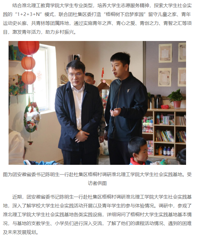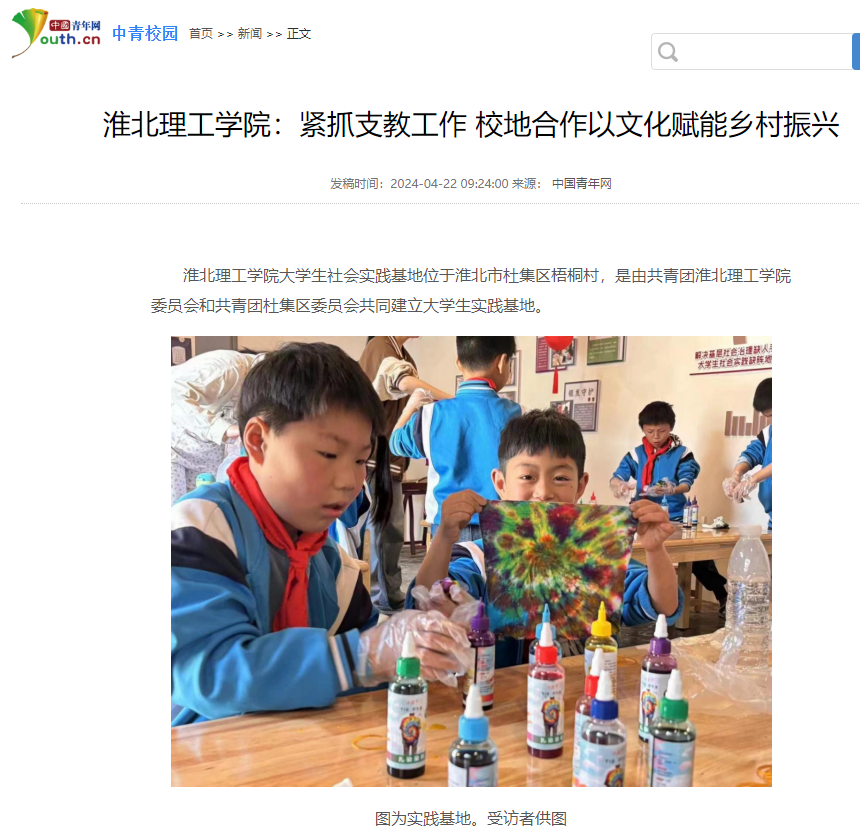 Beat365唯一官方网站大学生社会实践基地位于淮北市杜集区梧桐村,是由共青团Beat365唯一官方网站委员会和共青团杜集区委员会共同建立大学生实践基地。对此,中青网进行了报道: