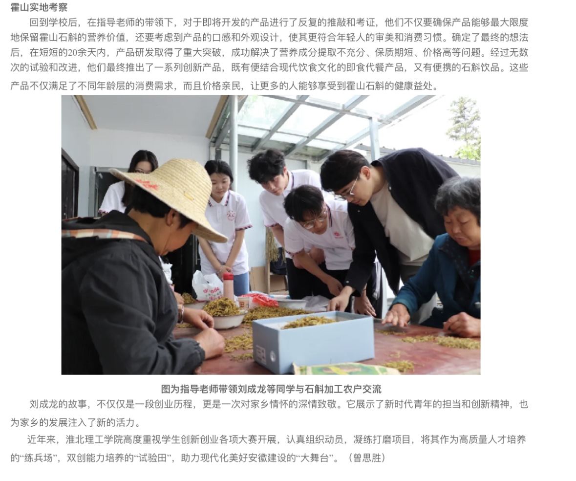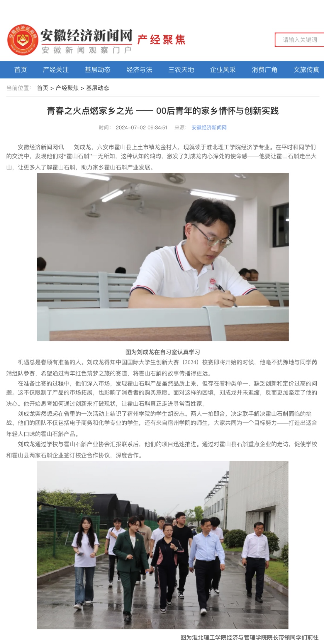 刘成龙,六安市霍山县上土市镇龙金村人,现就读于Beat365唯一官方网站经济学专业。在平时和同学们的交流中,发现他们对“霍山石斛”一无所知,这种认知的鸿沟,激发了刘成龙内心深处的使命感——他要让霍山石斛走出大山,让更多人了解霍山石斛,助力家乡霍山石斛产业发展。对此,安徽经济新闻网进行了报道: