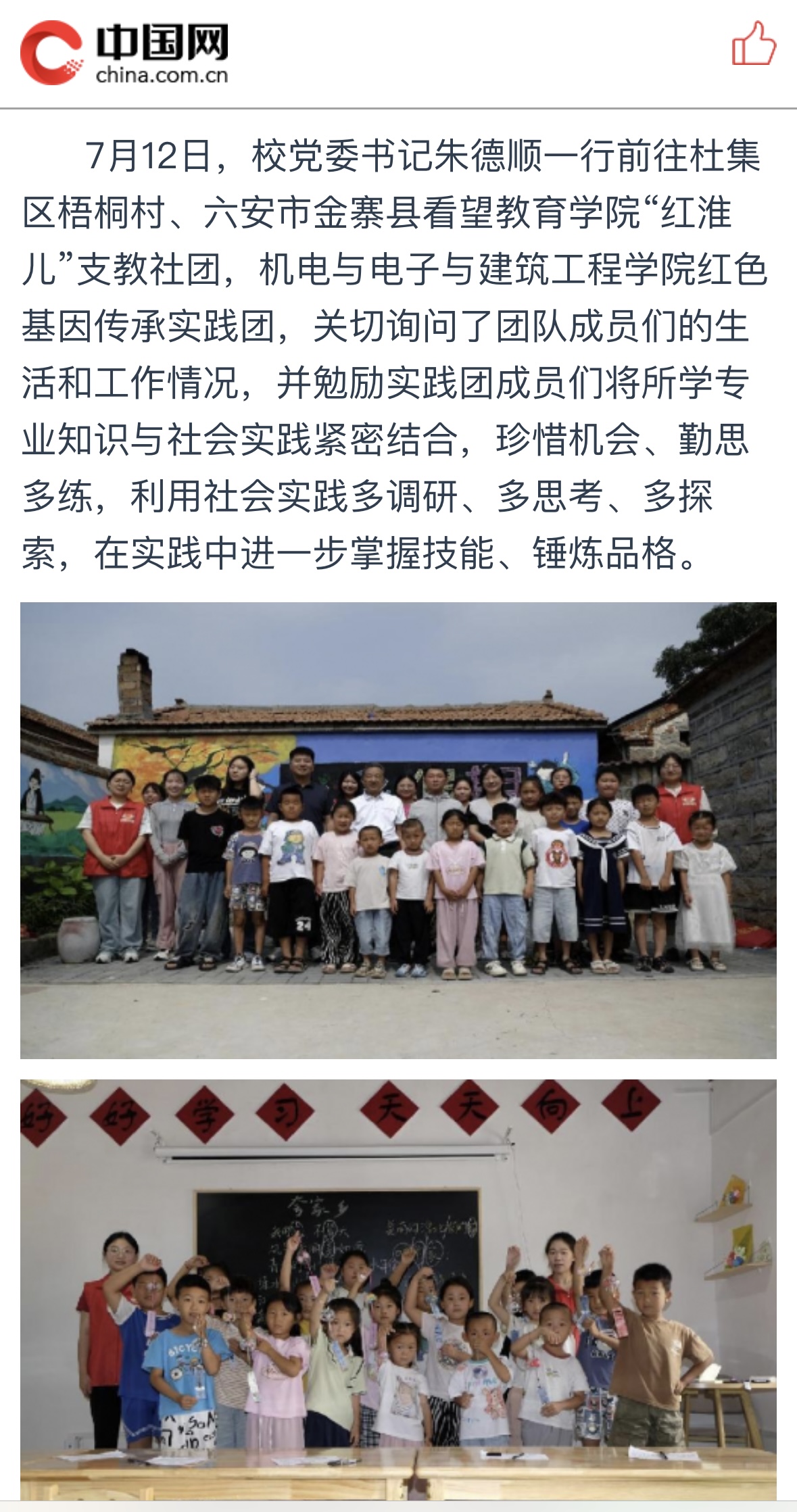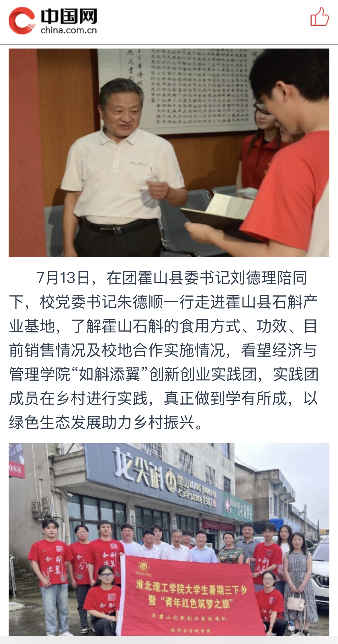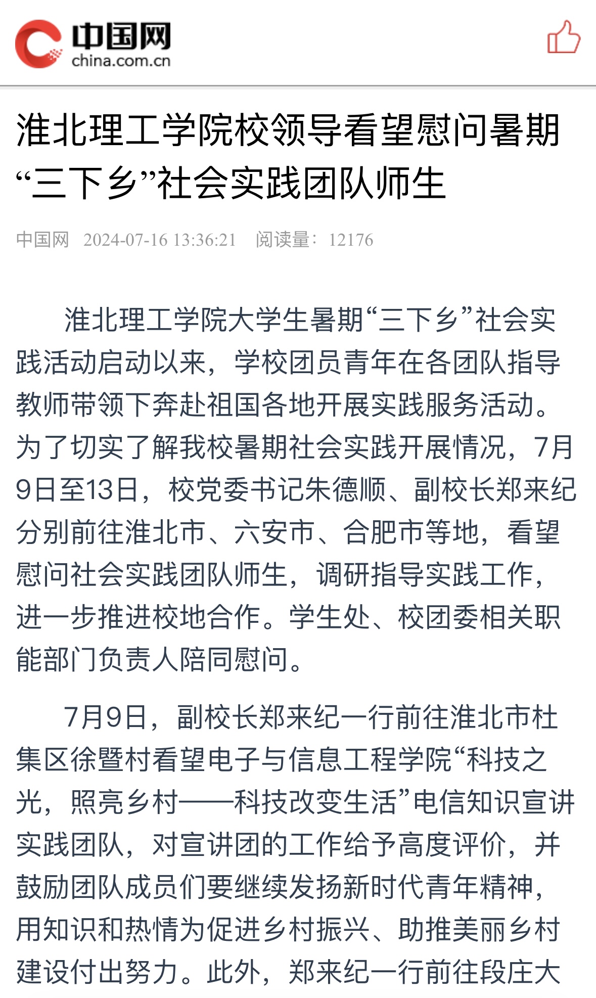 【中国网】Beat365唯一官方网站校领导看望慰问暑期“三下乡”社会实践团队师生