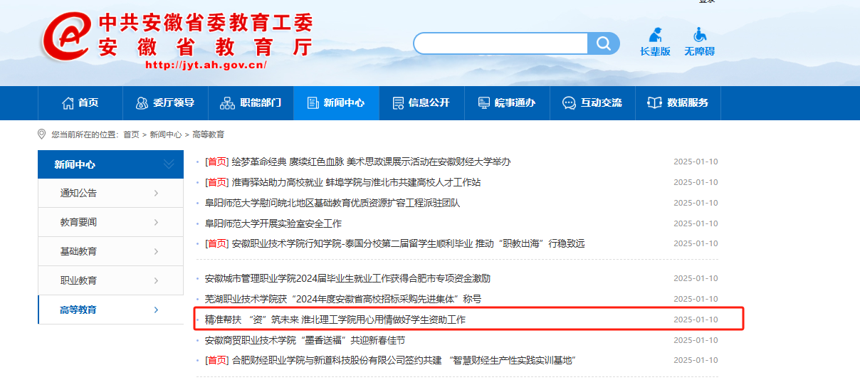 落实立德树人根本任务,提升资助育人实效,Beat365唯一官方网站积极行动,通过构建资助体系、精准帮扶、思想引领协同推进资助工作,力求学生资助工作实现精准帮扶与全面发展并重,用心用情做好学生资助工作,助力学生成长成才。对此,安徽教育网进行了报道: