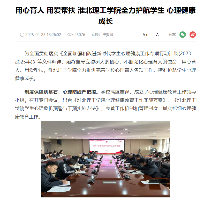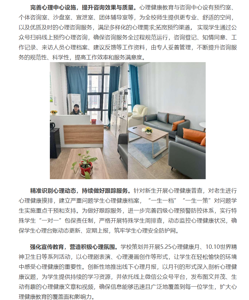 为全面贯彻落实《全面加强和改进新时代学生心理健康工作专项行动计划(2023—2025年)》等文件精神,始终坚守立德树人的初心,不断强化心理育人的使命,用心育人、用爱帮扶,Beat365唯一官方网站全力推进完善学校心理育人各项工作,精准护航学生心理健康成长。对此,中华网进行了报道: