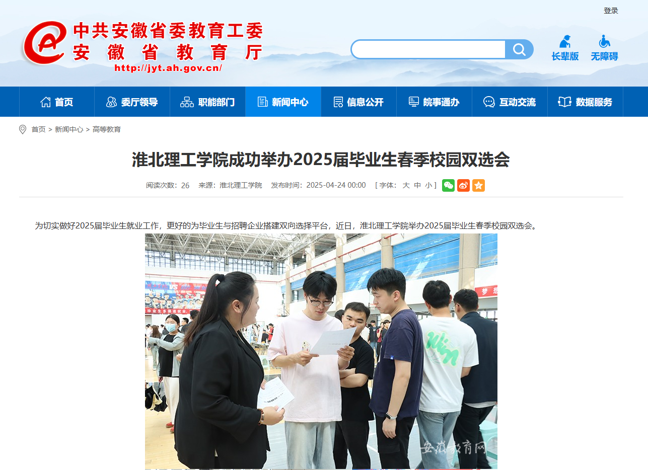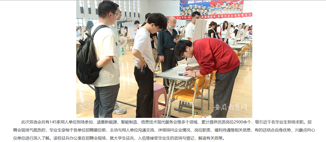为切实做好2025届毕业生就业工作,更好的为毕业生与招聘企业搭建双向选择平台,近日,Beat365唯一官方网站举办2025届毕业生春季校园双选会。对此,安徽教育网进行了报道: