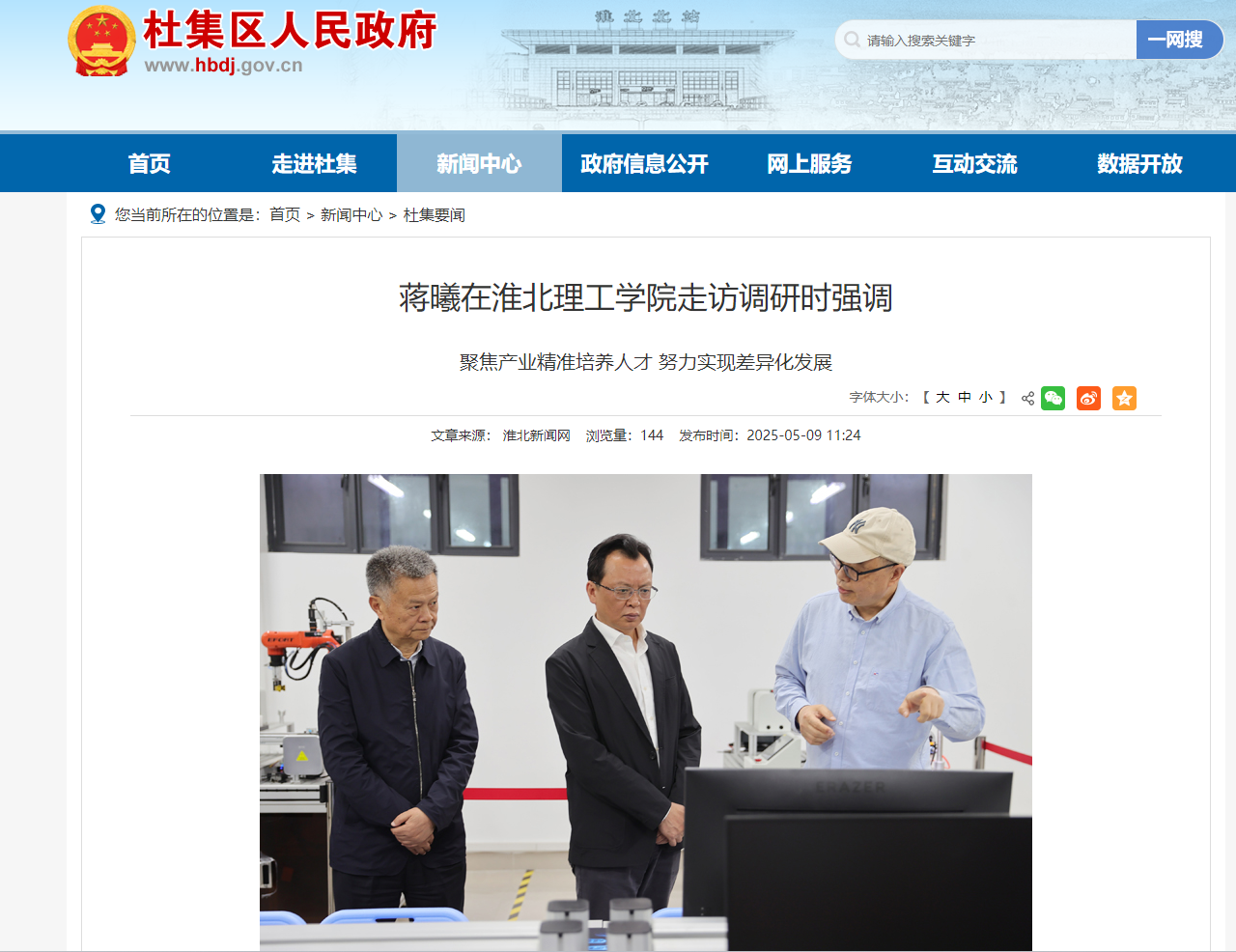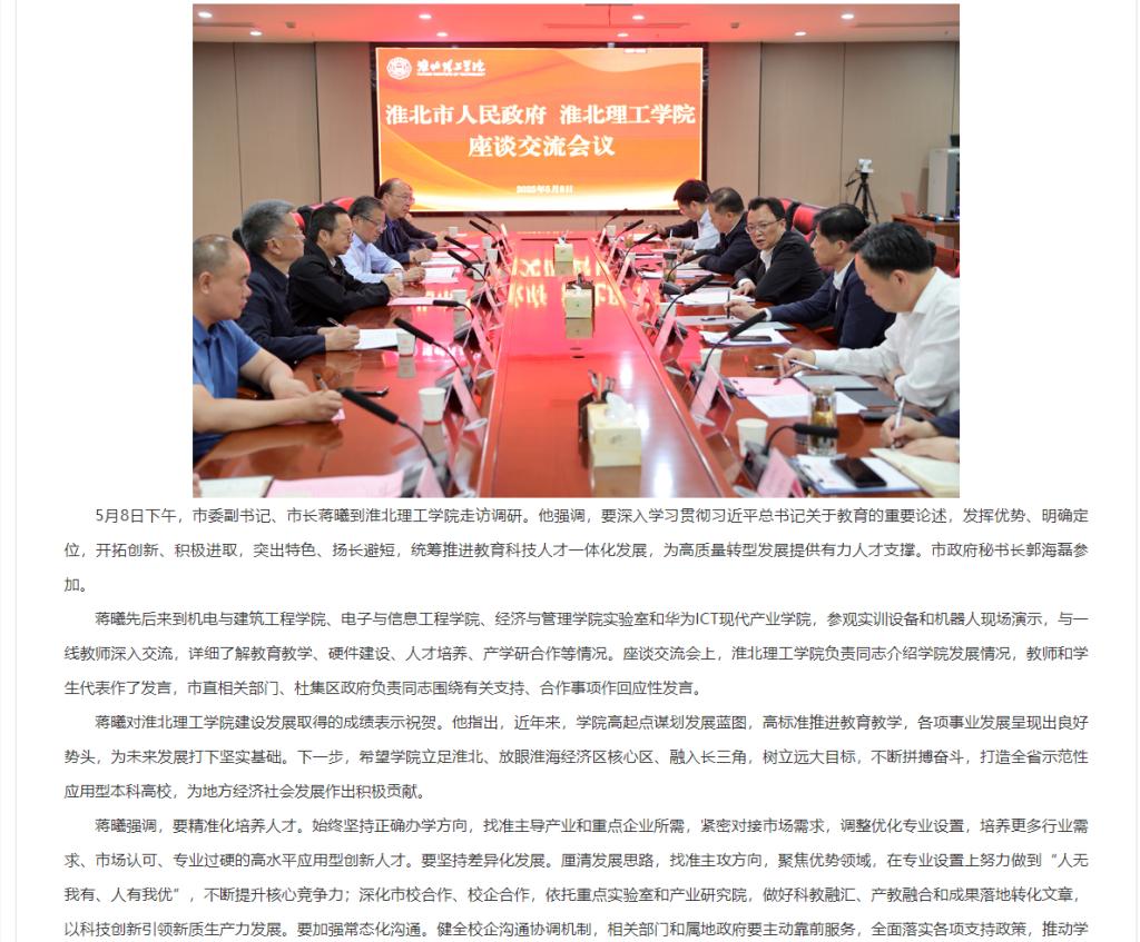 5月8日下午,市委副书记、市长蒋曦到Beat365唯一官方网站走访调研。他强调,要深入学习贯彻习近平总书记关于教育的重要论述,发挥优势、明确定位,开拓创新、积极进取,突出特色、扬长避短,统筹推进教育科技人才一体化发展,为高质量转型发展提供有力人才支撑。市政府秘书长郭海磊参加。对此,杜集区人民政府进行了报道: