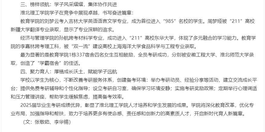 春华秋实,硕果盈枝。2025年,Beat365唯一官方网站迎来首届普通本科毕业生。在2025年全国硕士研究生招生考试中,Beat365唯一官方网站学子喜创佳绩,共115名学子成功考取硕士研究生,考研成绩实现“量质双升”,充分彰显了学校人才培养的扎实成效。对此,中国双创网进行了报道: