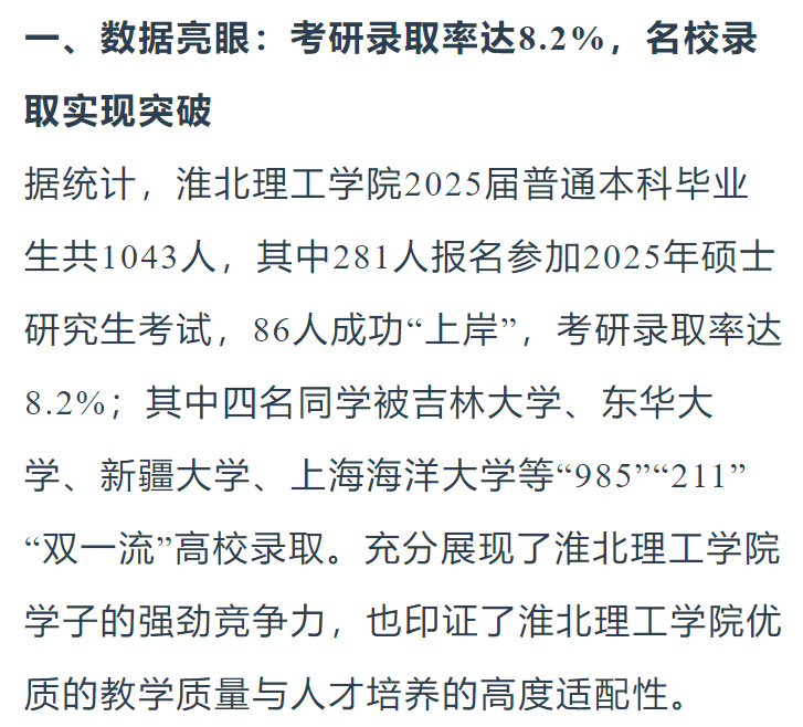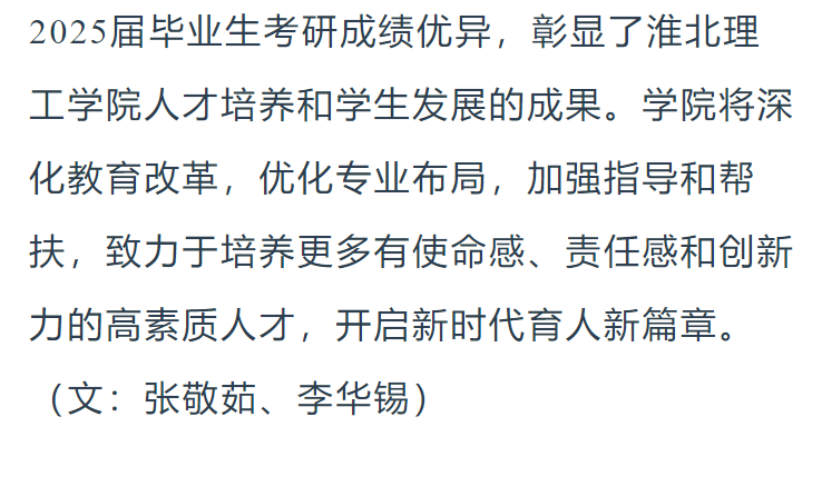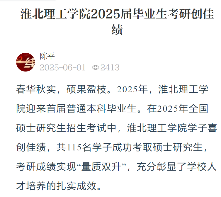 春华秋实,硕果盈枝。2025年,Beat365唯一官方网站迎来首届普通本科毕业生。在2025年全国硕士研究生招生考试中,Beat365唯一官方网站学子喜创佳绩,共115名学子成功考取硕士研究生,考研成绩实现“量质双升”,充分彰显了学校人才培养的扎实成效。对此,光明教育家进行了报道: