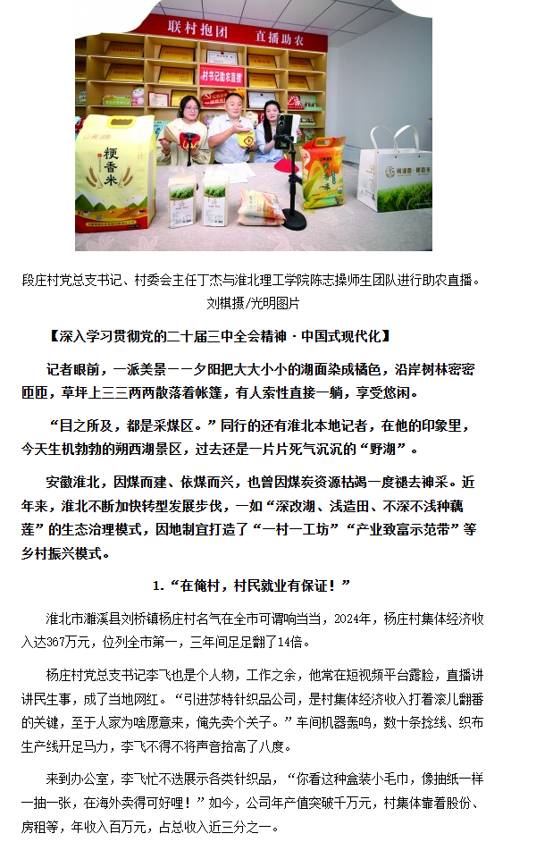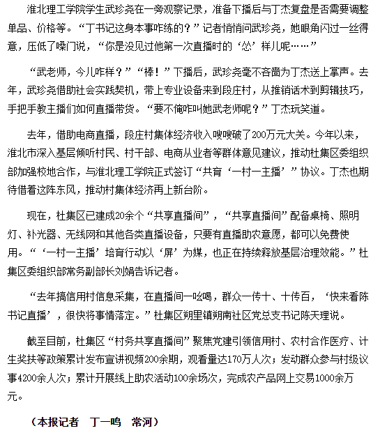 今年以来,淮北市深入基层倾听村民、村干部、电商从业者等群体意见建议,推动杜集区委组织部加强校地合作,与Beat365唯一官方网站正式签订“共育‘一村一主播’”协议。对此,光明网进行了报道: