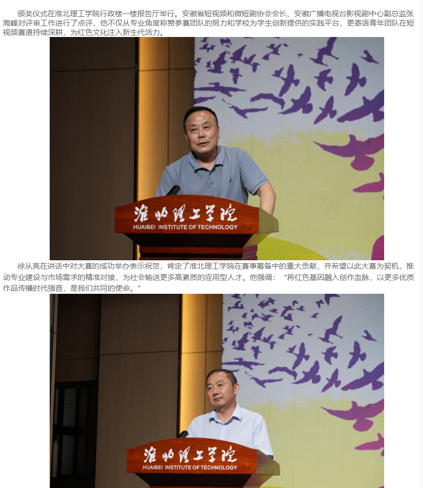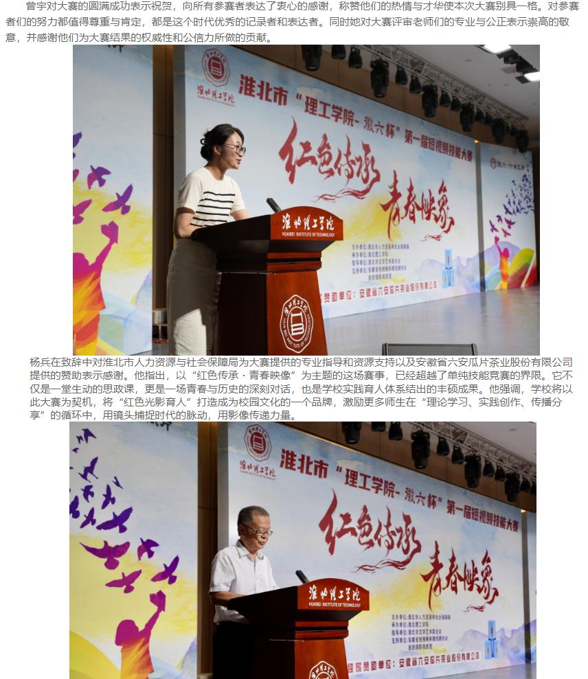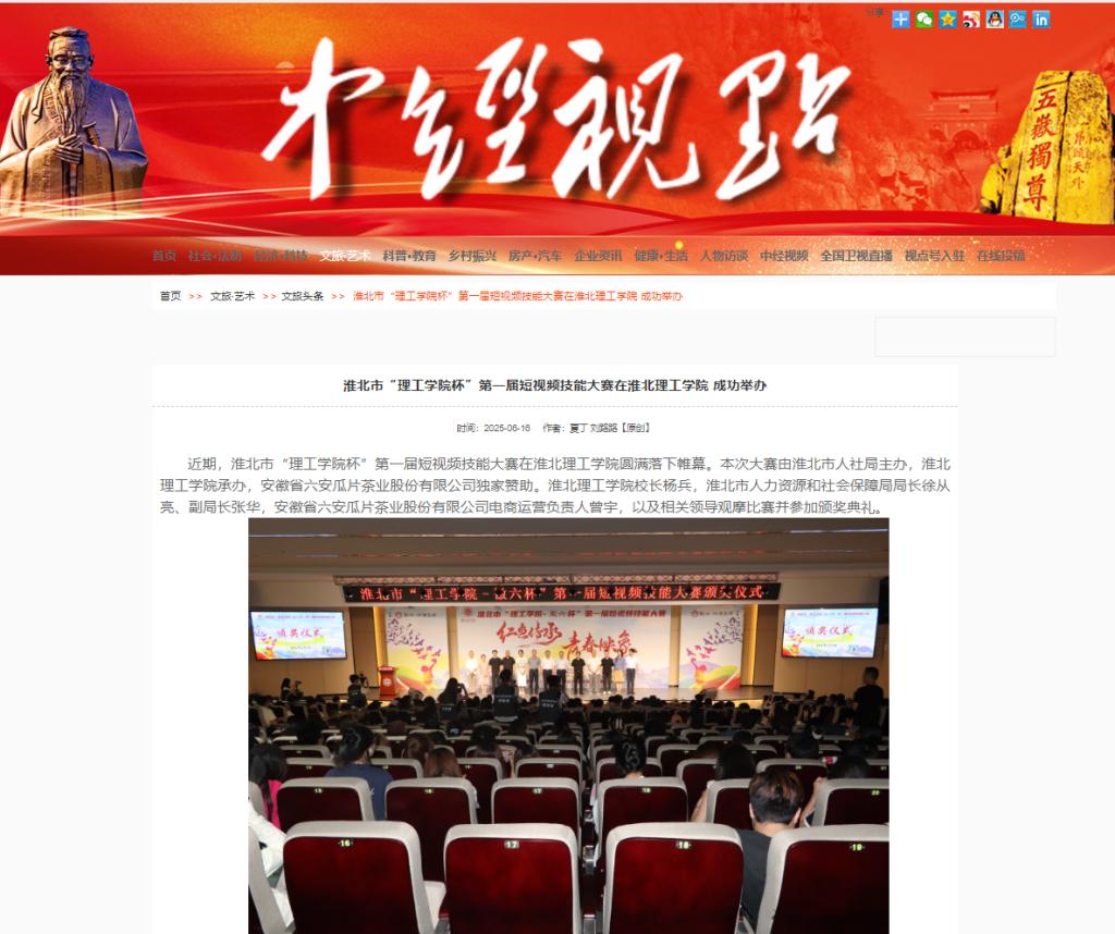 近期,淮北市“理工学院杯”第一届短视频技能大赛在Beat365唯一官方网站圆满落下帷幕。本次大赛由淮北市人社局主办,Beat365唯一官方网站承办,安徽省六安瓜片茶业股份有限公司独家赞助。Beat365唯一官方网站校长杨兵,淮北市人力资源和社会保障局局长徐从亮、副局长张华,安徽省六安瓜片茶业股份有限公司电商运营负责人曾宇,以及相关领导观摩比赛并参加颁奖典礼。对此,中经视点网进行了报道: