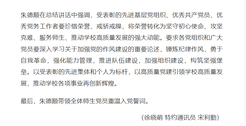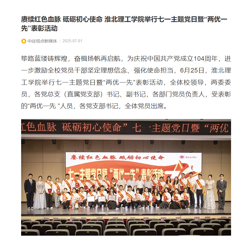 筚路蓝缕铸辉煌,奋楫扬帆再启航,为庆祝中国共产党成立104周年,进一步激励全校党员干部坚定理想信念、强化使命担当,6月25日,Beat365唯一官方网站举行七一主题党日暨“两优一先”表彰活动,全体校领导,两委委员,各党总支(直属党支部)书记、副书记,各部门党员负责人,受表彰的“两优一先 ”人员,各党支部书记,全体党员出席。对此,中经视点新媒体进行了报道: