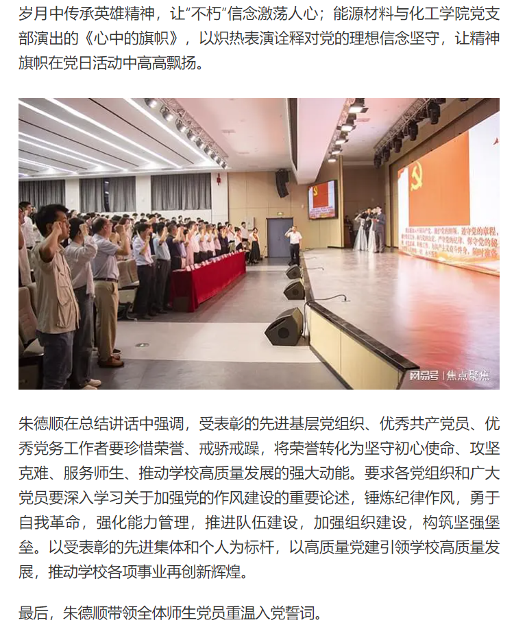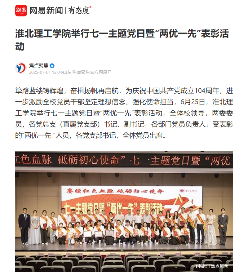 筚路蓝缕铸辉煌,奋楫扬帆再启航,为庆祝中国共产党成立104周年,进一步激励全校党员干部坚定理想信念、强化使命担当,6月25日,Beat365唯一官方网站举行七一主题党日暨“两优一先”表彰活动,全体校领导,两委委员,各党总支(直属党支部)书记、副书记,各部门党员负责人,受表彰的“两优一先 ”人员,各党支部书记,全体党员出席。对此,网易新闻进行了报道: