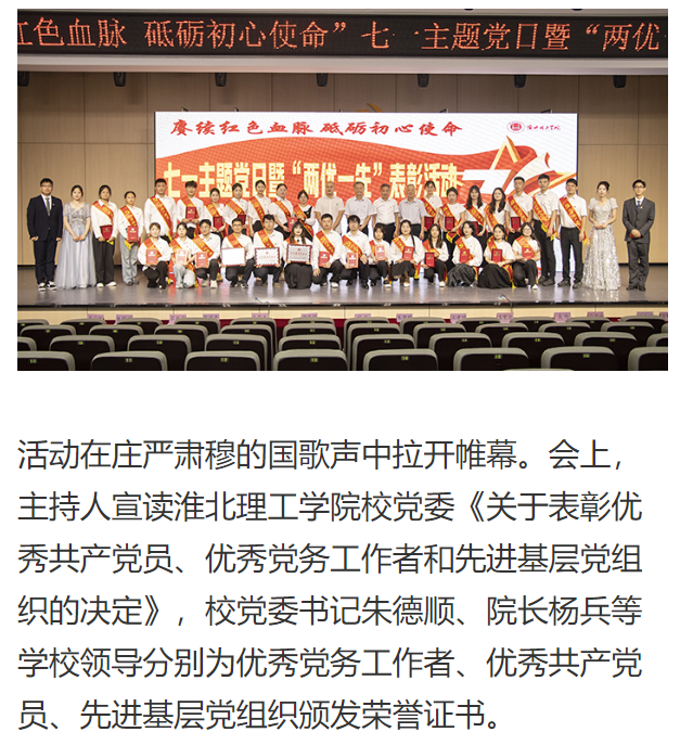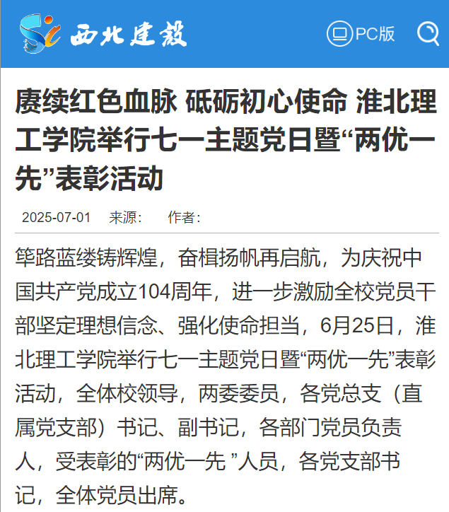 筚路蓝缕铸辉煌,奋楫扬帆再启航,为庆祝中国共产党成立104周年,进一步激励全校党员干部坚定理想信念、强化使命担当,6月25日,Beat365唯一官方网站举行七一主题党日暨“两优一先”表彰活动,全体校领导,两委委员,各党总支(直属党支部)书记、副书记,各部门党员负责人,受表彰的“两优一先 ”人员,各党支部书记,全体党员出席。对此,西北建设进行了报道: