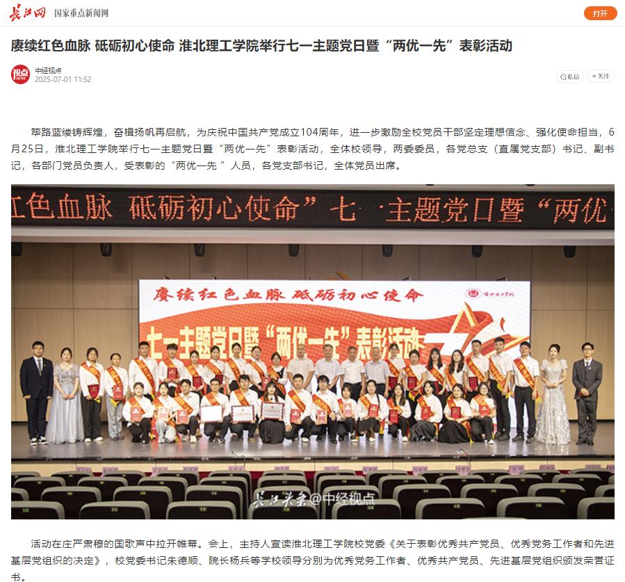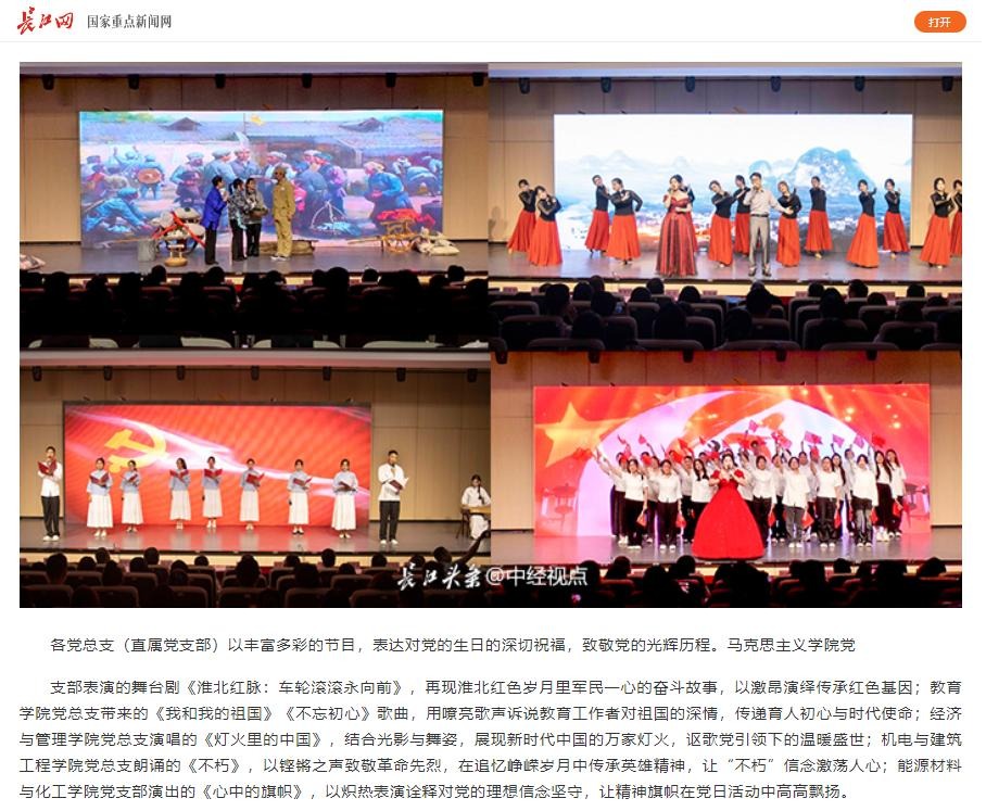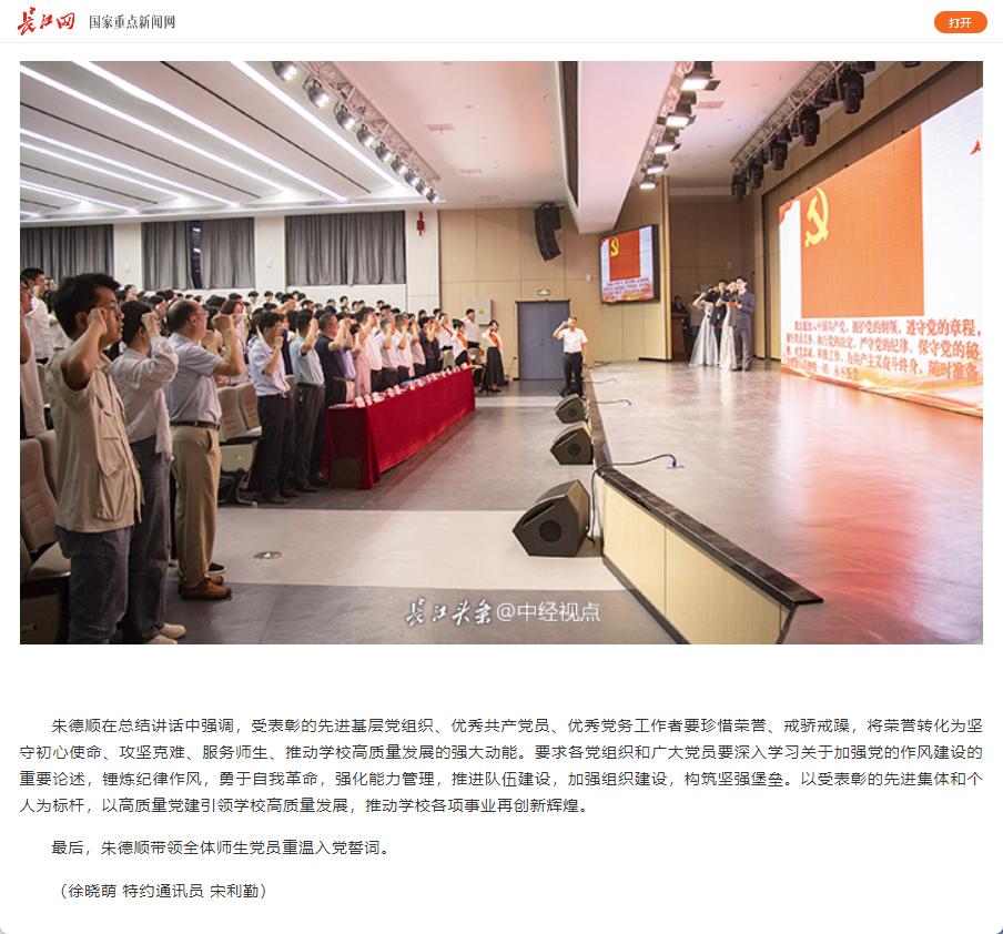 筚路蓝缕铸辉煌,奋楫扬帆再启航,为庆祝中国共产党成立104周年,进一步激励全校党员干部坚定理想信念、强化使命担当,6月25日,Beat365唯一官方网站举行七一主题党日暨“两优一先”表彰活动,全体校领导,两委委员,各党总支(直属党支部)书记、副书记,各部门党员负责人,受表彰的“两优一先 ”人员,各党支部书记,全体党员出席。对此,长江网进行了报道: