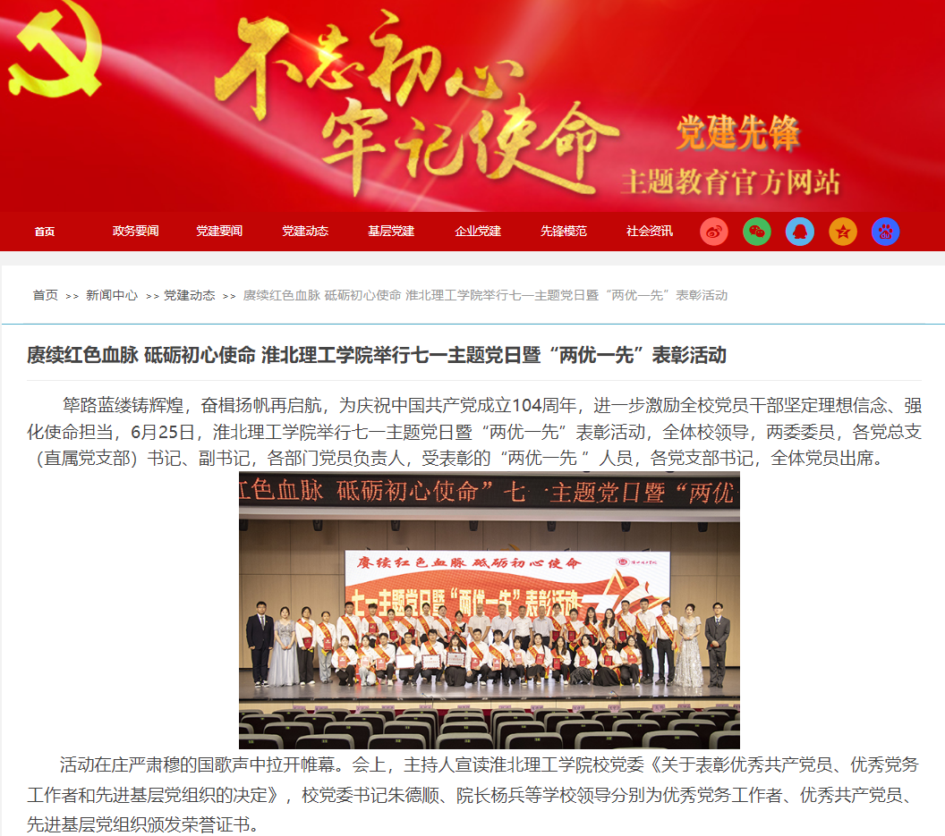 筚路蓝缕铸辉煌,奋楫扬帆再启航,为庆祝中国共产党成立104周年,进一步激励全校党员干部坚定理想信念、强化使命担当,6月25日,Beat365唯一官方网站举行七一主题党日暨“两优一先”表彰活动,全体校领导,两委委员,各党总支(直属党支部)书记、副书记,各部门党员负责人,受表彰的“两优一先 ”人员,各党支部书记,全体党员出席。对此,党建先锋网进行了报道: