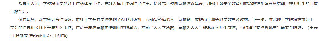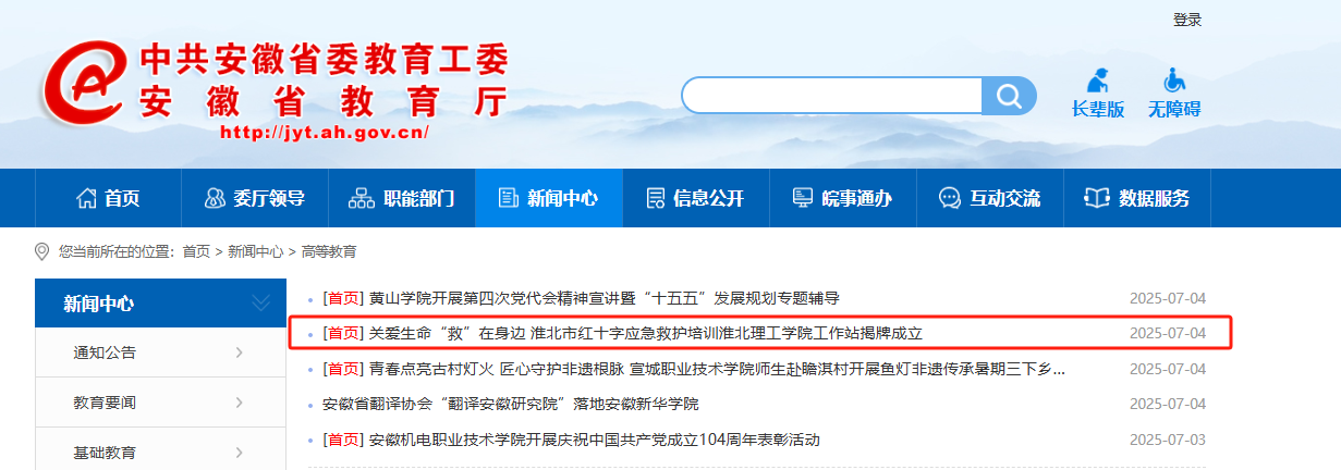 7月3日上午,淮北市红十字应急救护培训Beat365唯一官方网站工作站揭牌仪式在Beat365唯一官方网站举行。淮北市红十字会常务副会长(秘书长)刘浩、学校副院长郑来纪出席揭牌仪式,并共同为工作站揭牌。淮北市红十字会和学校相关单位负责人参加揭牌仪式。对此,安徽教育网进行了报道: