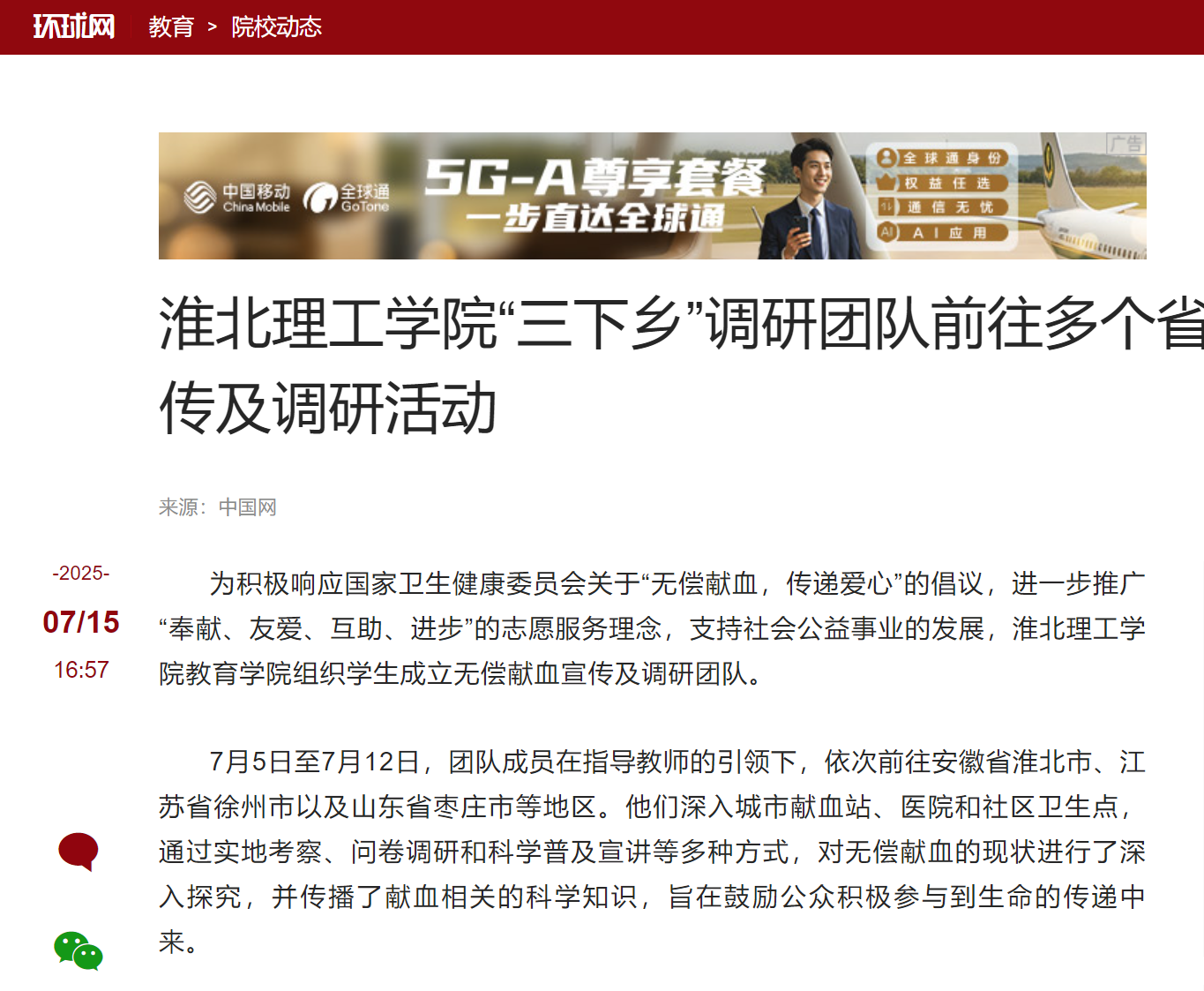 为积极响应国家卫生健康委员会关于“无偿献血,传递爱心”的倡议,进一步推广“奉献、友爱、互助、进步”的志愿服务理念,支持社会公益事业的发展,Beat365唯一官方网站教育学院组织学生成立无偿献血宣传及调研团队。对此,环球网进行了报道: