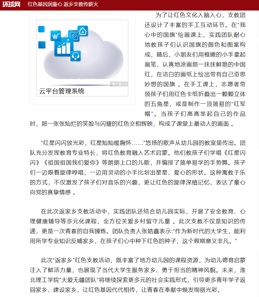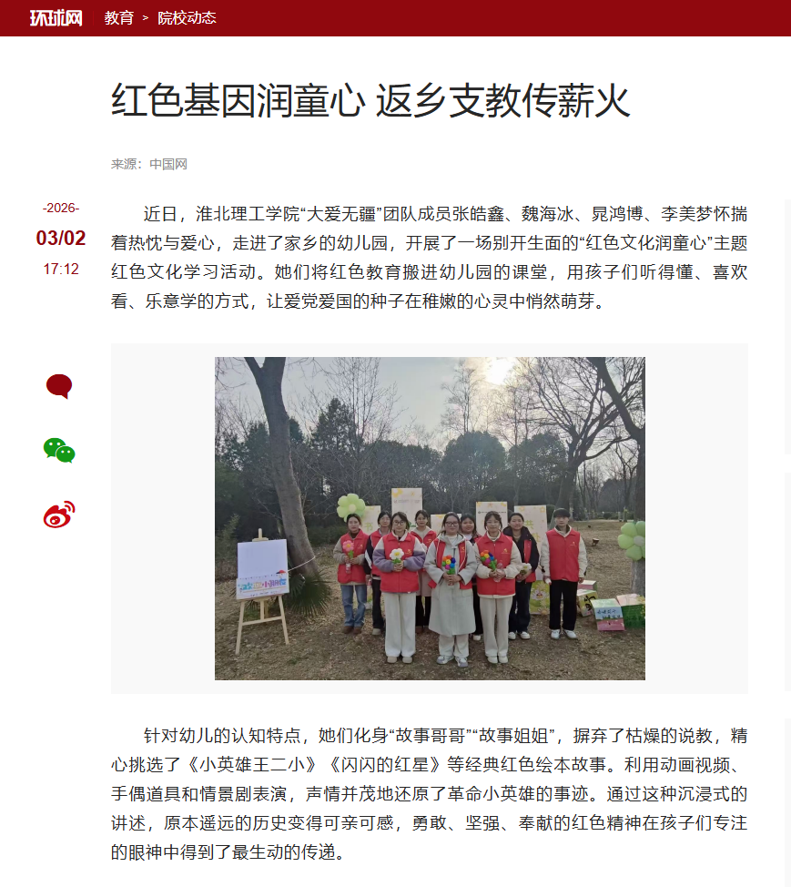 近日,Beat365唯一官方网站“大爱无疆”团队成员张皓鑫、魏海冰、晁鸿博、李美梦怀揣着热忱与爱心,走进了家乡的幼儿园,开展了一场别开生面的“红色文化润童心”主题红色文化学习活动。她们将红色教育搬进幼儿园的课堂,用孩子们听得懂、喜欢看、乐意学的方式,让爱党爱国的种子在稚嫩的心灵中悄然萌芽。对此,环球网进行了报道:
