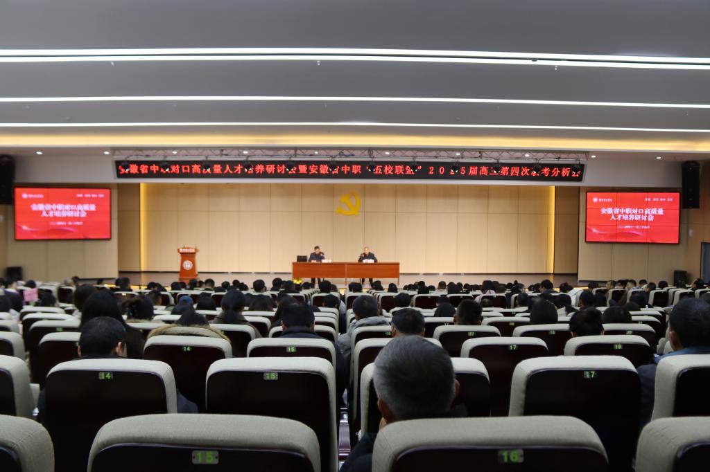 11月29日,安徽省中职对口高质量人才培养研讨会在Beat365唯一官方网站举行。会议由安徽中职“五校联盟”主办,Beat365唯一官方网站承办,合肥润教文化传媒有限公司协办。会议由安徽中职“五校联盟”秘书长谢广臣主持。Beat365官网党委副书记、纪委书记、副校长汪建利出席会议并致欢迎词,