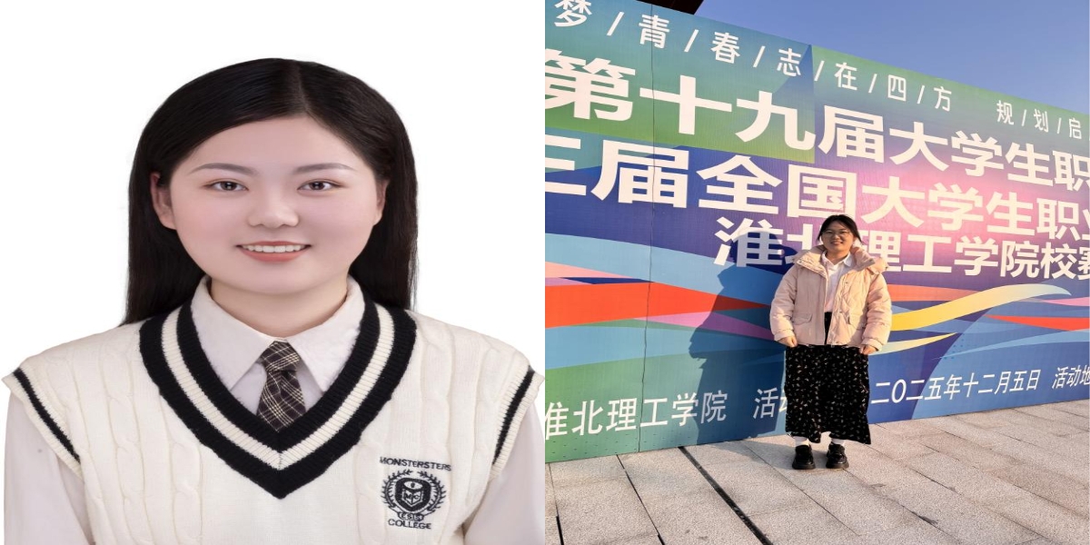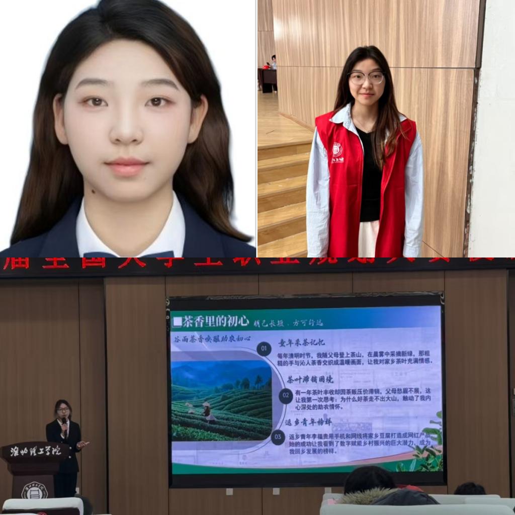 积极参加各类赛事,曾获第十九届全国大学生先进成图技术与产品信息建模创新大赛校级三等奖、第六届安徽省中华职业教育创新创业大赛校级三等奖,2024年“外研社·国才杯”全国大学生外语能力大赛校赛(短视频项)铜奖。2025年作为队长带领团队在淮北开展实地调研,负责的项目获得安徽省大学生创新创业训练计划项目立项。